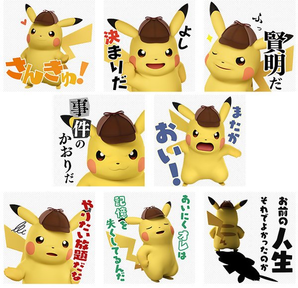 [Actualizado 03/02/2016] Se han confirmado nuevos stickers para la app. Todos ellos, basados en Detective Pikachu. De momento, solo están disponibles en Japón hasta el día 16 de Abril de 2016.