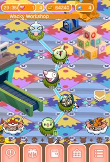 - En la versión movil de Shuffle se han añadido 15 nuevas fases normales a la Fábrica de Juguetes, en estas nuevas fases tenemos a: Solosis, Honedge, Drillbur, Larvitar, Shuppet, Rufflet, Bergmite, Mightyena, Snubbull, Lickitung, Timburr, Banette, Tangela, Pupitar y un Mega Aerodactyl.