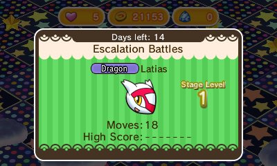-En primer lugar para celebrar su primer año, Pokémon Shuffle (3DS) presenta un desafío de alta velocidad de Shaymin en su forma cielo. Disponible hasta el 17 de Febrero.