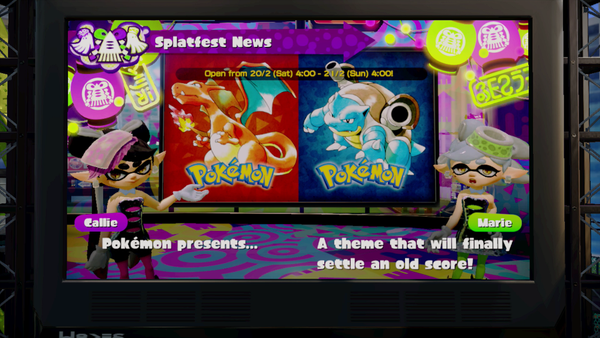 El Splatfest empieza el día 20 de Febrero y acaba el día 21. Todos los jugadores que participen recibirán una camiseta de uso temporal (solo disponible durante el Splatfest) en la que se verá un Charizard, un Venusaur o un Blastoise dependiendo de vuestra elección.