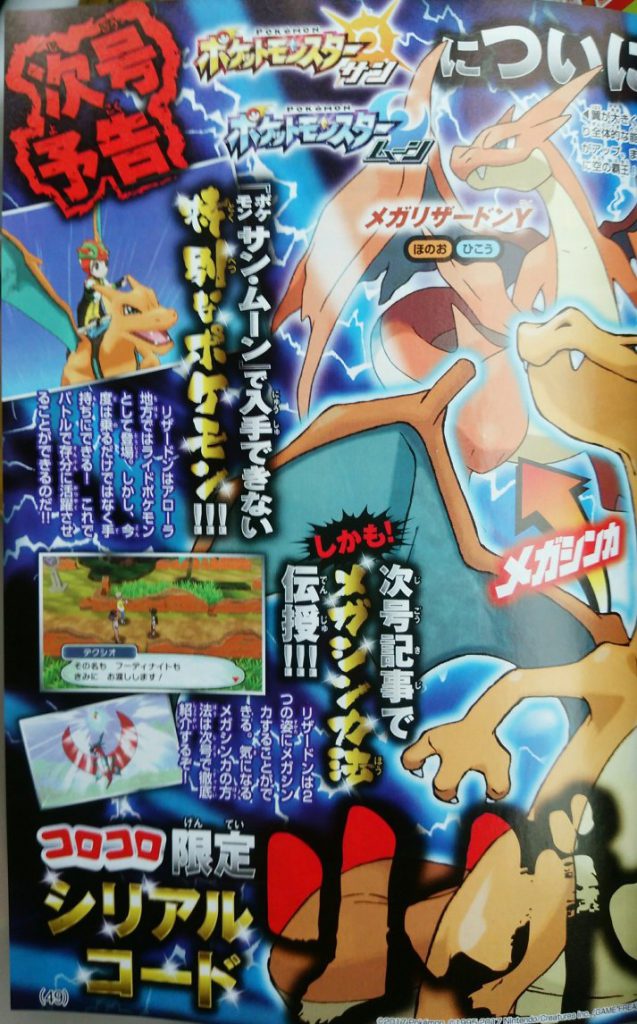 Este mes en la revista japonesa CoroCoro se ha revelado la distribución de un Charizard de evento para Pokémon Sol y Luna.
