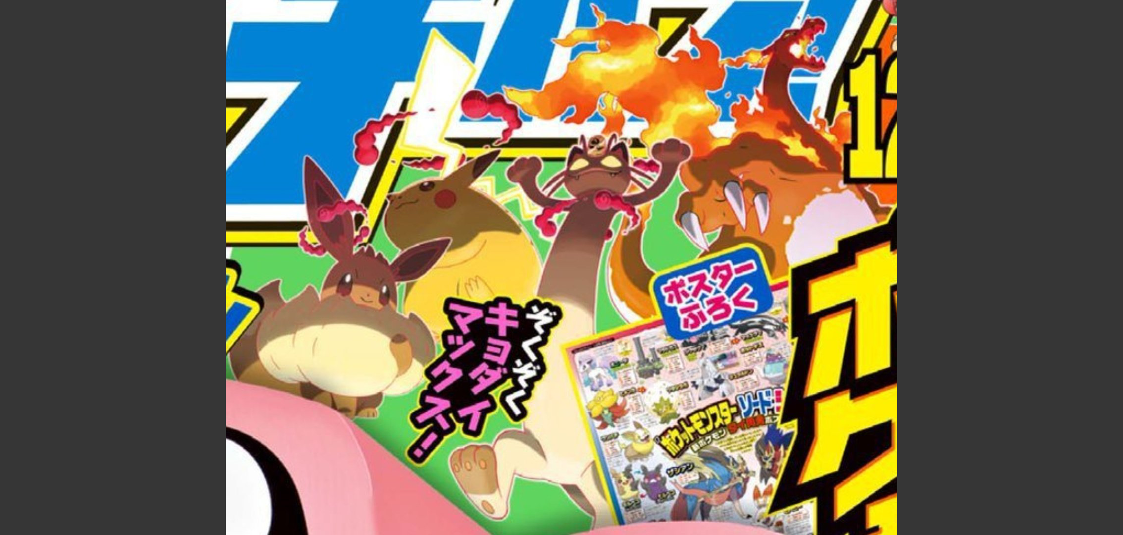Gracias a la revista CoroCoro de este mes hemos podido conocer 4 Pokémon que obtendrán una forma Gigamax en Pokémon Espada y Escudo, estos son Eevee, Pikachu, Meowth y Charizard.