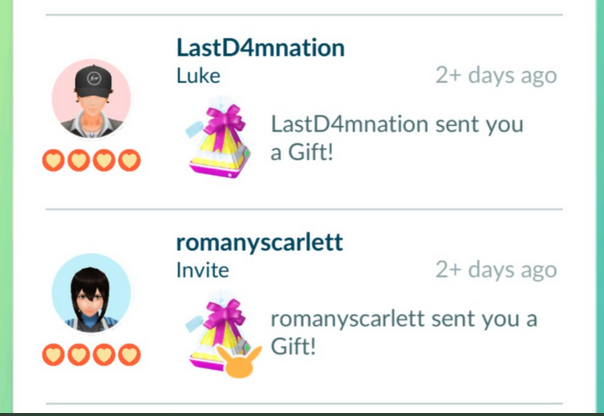 También relacionado a las pegatinas, los regalos enviados por amigos que contengan una pegatina ahora mostrarán un icono de Pikachu sobre el regalo antes de abrirlo, como se ve en la imagen.