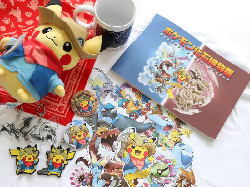 A continuación os dejamos con imágenes de toda la colección. Como se puede ver todo está centrado en los Pokémon fósiles y en el Pikachu paleontólogo. Cuentan con una gran variedad, camisetas, peluches, bolsas, libros, chapas, tazas y bandanas.