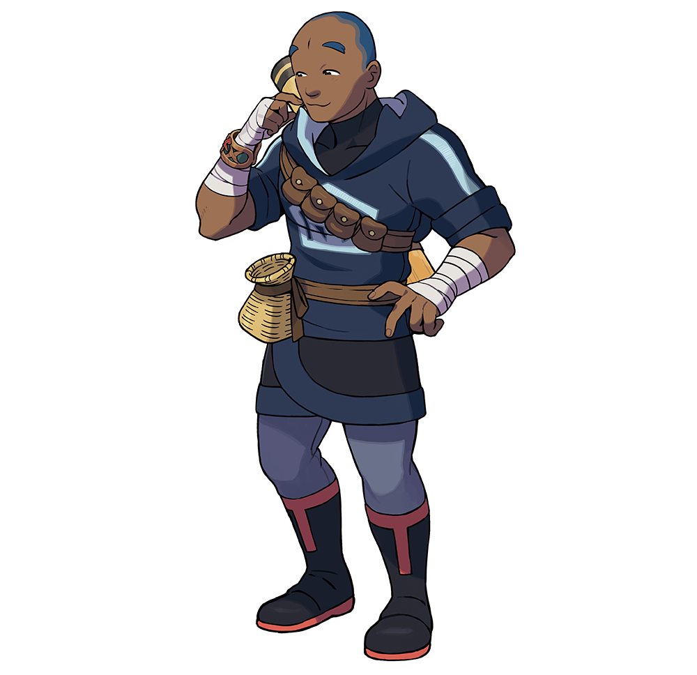 Erio vive cerca del mar y se encarga de cuidar al Basculegion especial que vive en la zona. Es bastante asustadizo y los Pokémon de tipo Fantasma no le gustan demasiado.
