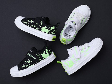 El 20 de abril llegarán a Japón estos nuevos zapatos de la marca CONVERSE, estos pertenecen a una colección especial de Pokémon. Los zapatos converse contarán con diseños de Pikachu en blanco o negro, uno de Pikachu con fondo de amarillo, Eevee, Mew y Piplup.