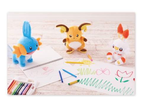 La marca Takara Tomy lanzará en Japón el 26 de mayo una nueva colección de peluches esponjosos y suaves. Estos peluches serán de los siguientes Pokémon: Gengar, Mew, Mudkip, Raichu, Scorbunny y Dragonite.