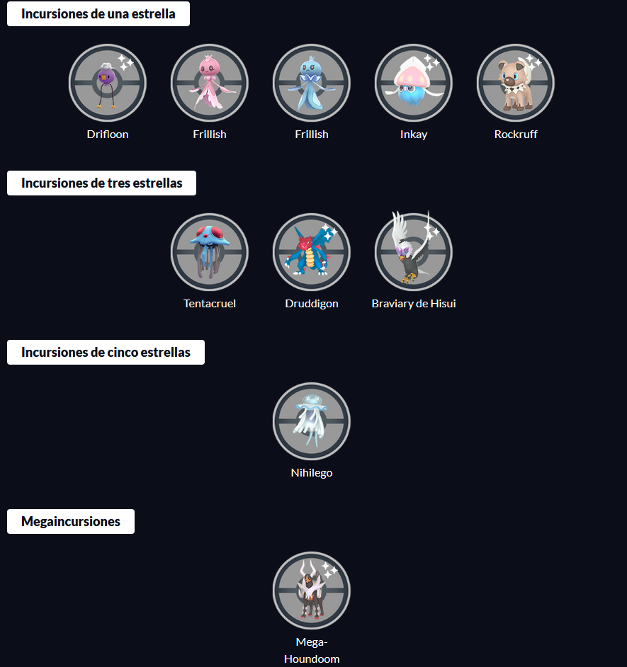 Las siguientes incursiones se encontrarán activas durante el evento.