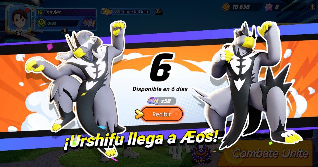 Pokémon UNITE ha anunciado por sorpresa mediante una cuenta atrás la llegada del legendario Urshifu como Pokémon jugable. Esta llegada se producirá dentro de 6 días y por cada día que entremos al juego se nos ofrecerá una pequeña recompensa, en el caso de hoy se están ofreciendo 50 tickets morados Aeos.