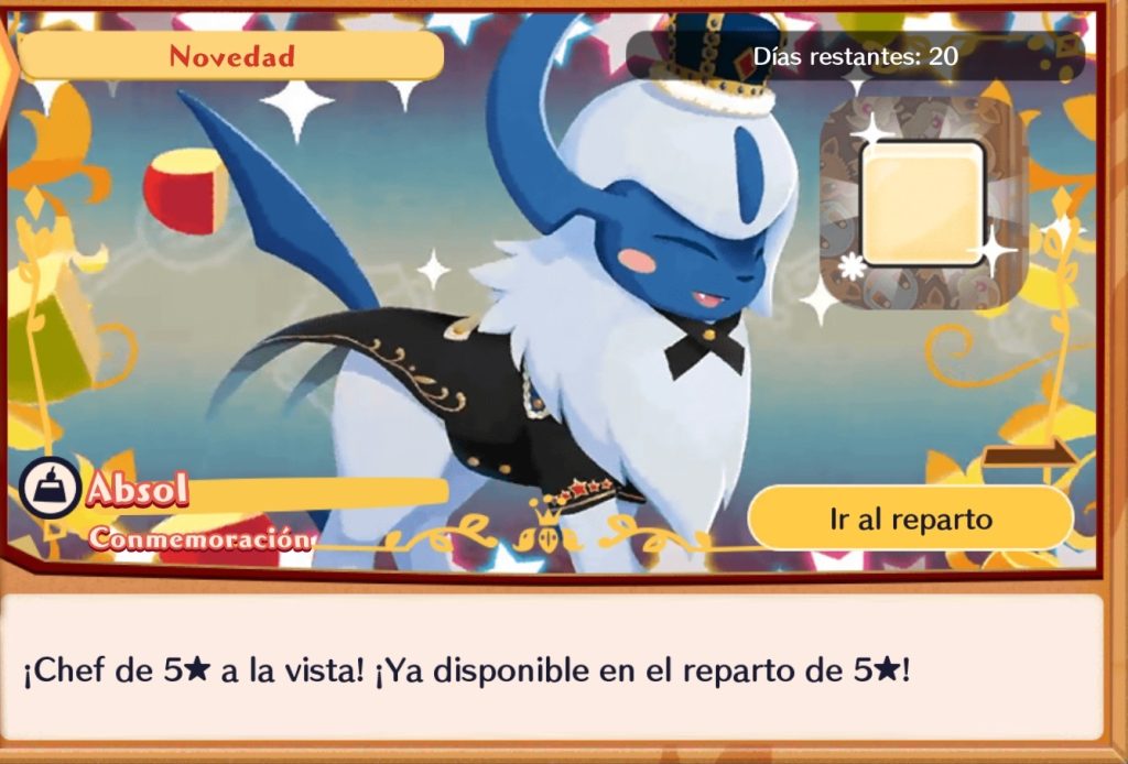 Los jugadores de Pokémon Café Remix podrán probar suerte una vez por día en el Evento de Reparto que elijan, teniendo la posibilidad de obtener a Absol con su atuendo de Conmemoración. En el Desafío Especial de Eevee, se podrá obtener un Cupón de Reparto de Absol adicional para aumentar el número de oportunidades para su obtención.