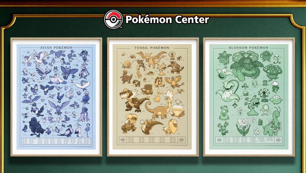 El Pokémon Center Online del territorio de Estados Unidos, Reino Unido y Canadá ha recibido una pequeña colección formada por tres posters distintos con temáticas distintas de Pokémon; uno centrado en el tipo Volador, otro en los fósiles y un último poster con diversos tipo Planta.