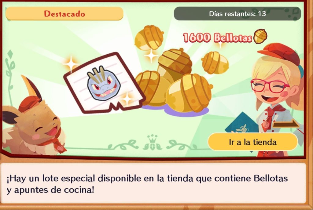 También estará disponible un nuevo Lote especial en la Tienda de Pokémon Café ReMix titulado Lote apuntes de cocina de Machoke. Este Lote contendrá 1.600 Bellotas y un Apunte de Cocina de Machoke estando disponible desde el día 27 de mayo hasta el 10 de junio por un precio de 1,19€.
