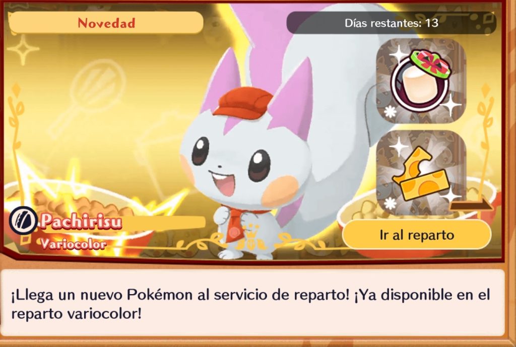 Los jugadores de Pokémon Café Remix podrán probar suerte una vez por día en el Evento de Reparto que elijan, teniendo la posibilidad de obtener a Pachirisu variocolor como recompensa. De la misma manera que en anteriores Eventos de Reparto, el primer intento diario será totalmente gratuito, no costando ningún recurso externo. Igualmente, los jugadores que así lo deseen, dispondrán de intentos adicionales a realizar mediante el pago de bellotas para aumentar las probabilidades de obtener a Pachirisu variocolor.