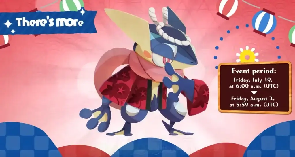Desde el día 19 de julio hasta el 02 de agosto, los jugadores de Pokémon Café ReMix podrán participar en un nuevo evento de tipo Llena la Alacena, titulado El Festival de Greninja, y protagonizado por Greninja con su atuendo Chqueta Veraniega.