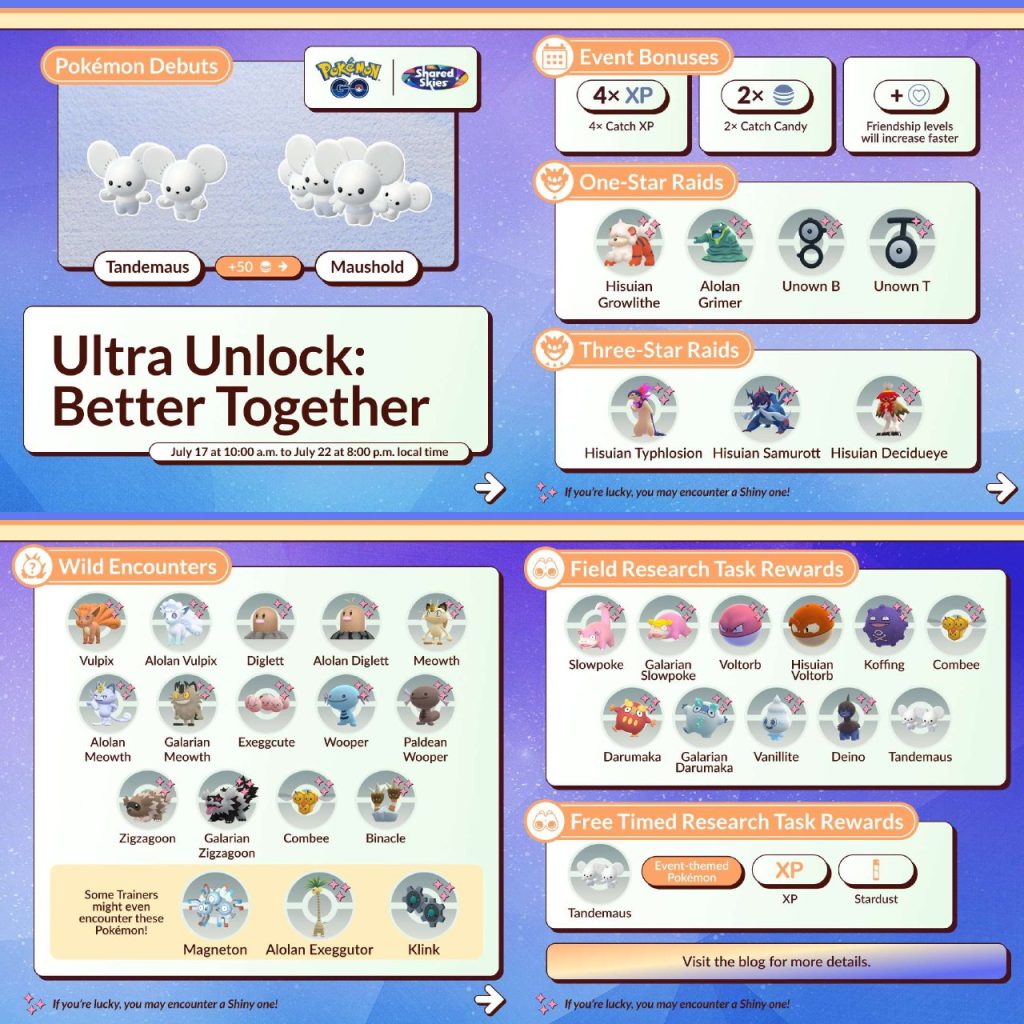Durante el evento tendrá lugar una investigación temporal gratuita en la que podremos obtener PX, Polvos Estelares y encuentros con Tandemaus y otros Pokémon temáticos del evento.