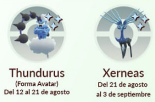 En las incursiones legendarias tendremos la presencia de Thundurus (forma Avatar o Encarnada), que será sustituido por Xerneas el miércoles 21, quién además será el protagonista de la hora de incursiones del mismo miércoles 21 de agosto desde las 18:00 hasta las 19:00, hora local.