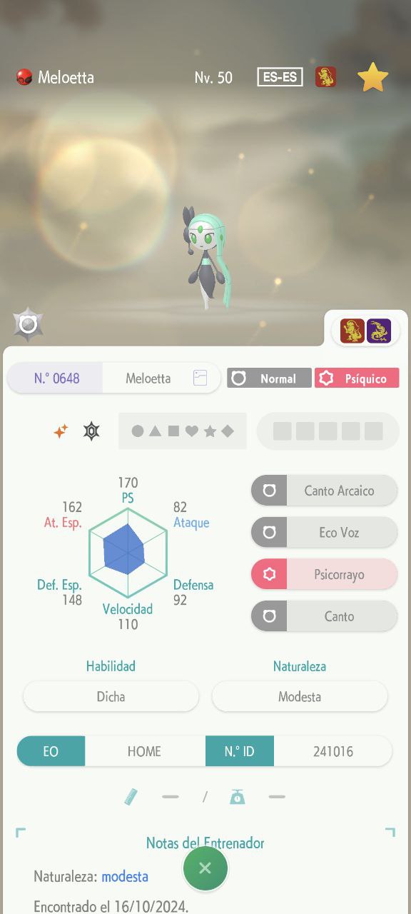 Pokémon HOME ha recibido recientemente su versión 3.2.2, y con ella ha llegado una nueva función, «Conoce a los Pokémon», que nos dará información sobre los Pokémon que tengamos registrados, solución de problemas menores, y, lo más importante, nuevas recompensas por completar Pokédex y otros desafíos, en este caso, Meloetta variocolor.