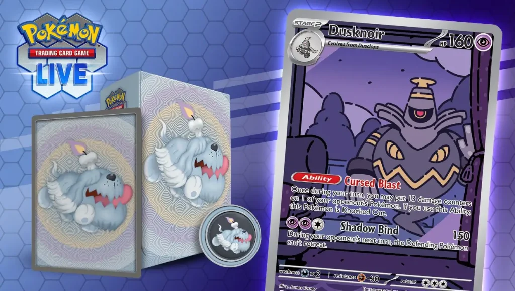 Al iniciar sesión, obtendréis automáticamente un paquete de objetos variados, incluyendo una carta de Duskull, Dusclops, y Dusknoir, una línea evolutiva completa ilustrada por James Turner. Además, recibiréis un sobre de Corona Astral y 444 monedas del juego.