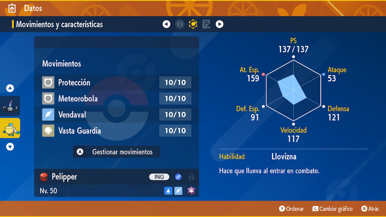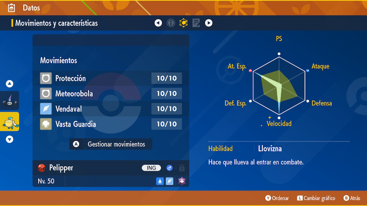 - Movimientos: Protección, Meteorobola, Vendaval, Vasta Guardia