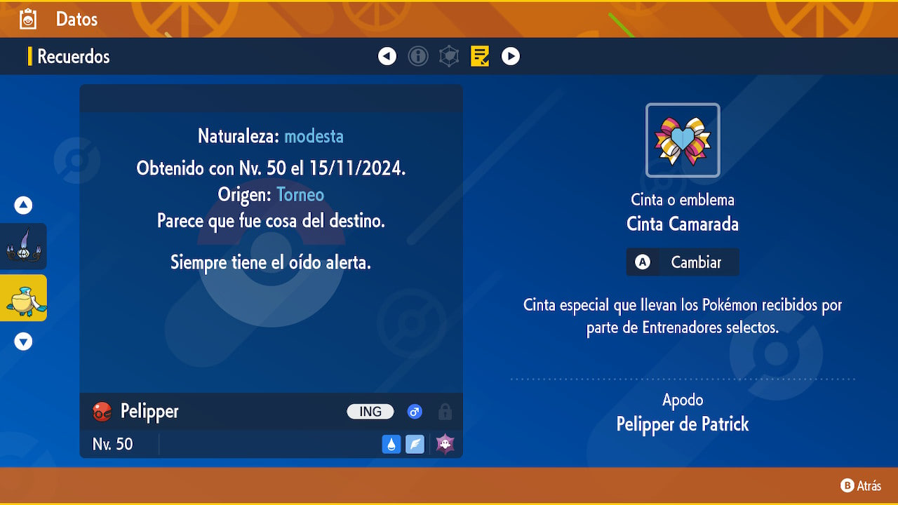 Como os detallamos en esta noticia, por motivo de la retransmisión del Campeonato Internacional Pokémon de Latinoamerica, recientemente se ha compartido un nuevo código de Regalo misterioso para Pokémon Escarlata y Pokémon Púrpura, permitiendo así obtener un Pelipper competitivo variocolor de forma instantánea. Este Pokémon está basado en el que utilizó el jugador Patrick Connors para ganar el Campeonato Internacional Pokémon de Norteamerica este pasado junio de 2024.