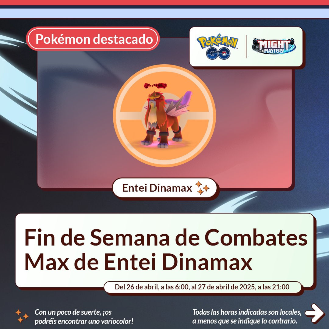 Entei Dinamax se introducirá mediante este evento. Aparecerá en los Combates Max de nivel cinco.