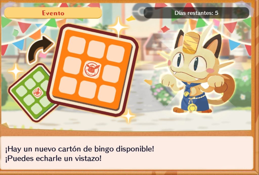 A partir del día 26 de julio hasta el 01 de agosto, estará disponible el segundo cartón de Bingo en el evento Meowth de Alola, ¡vaya caos! para aquellos jugadores que previamente hayan completado el primer cartón. Entre los premios de este evento, encontraremos Cupones saltacomandas, Tartaletas de Experiencia y Bellotas. Además. el premio a destacar, consistirá en un nuevo atuendo para Meowth, obtenible una vez se cante bingo.
