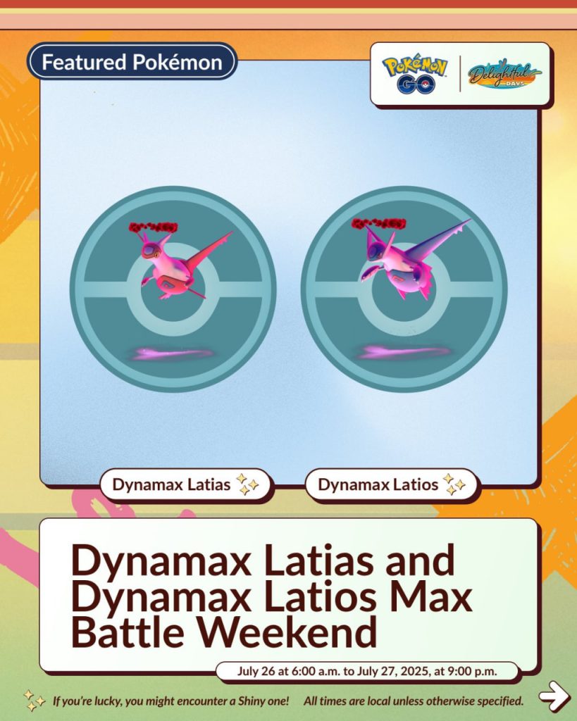 Latios y Latias Dinamax se introducirán mediante este evento. Aparecerá en los Combates Max de nivel cinco.