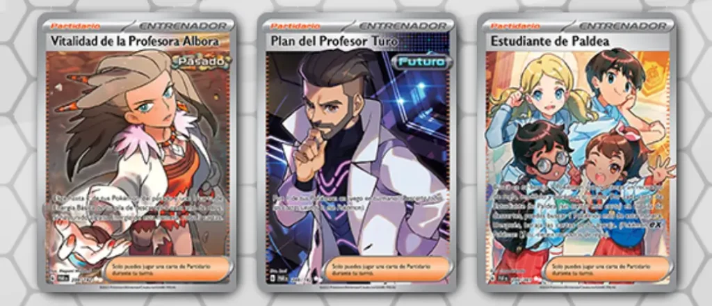 - Una copia de Vitalidad de la Profesora Albora, una de Plan del Profesor Turo y dos de Estudiante de Paldea