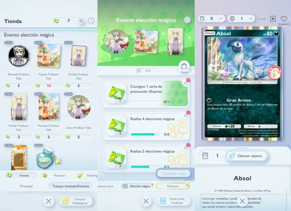 Pokémon TCG Pocket ha iniciado un evento de Elecciones Mágicas centrado en Shaymin y Absol. A través de este evento, los jugadores podrán obtener cartas promocionales de estos Pokémon, junto con elementos cosméticos y otros objetos variados del profesor Oak y otoño.