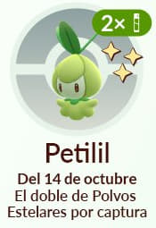 La hora destacada de esta semana será la de Petilil, con doble de Polvos Estelares por Captura. Esta tendrá lugar el martes 14 de octubre de 18:00 a 19:00, hora local.