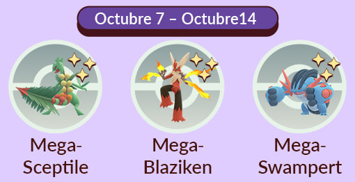 En las megaincursiones tendremos la presencia de Mega Sceptile, Mega Blaziken y Mega Swampert, quienes cambiará el martes 14 de octubre por Mega Mawile y Mega Salamence.