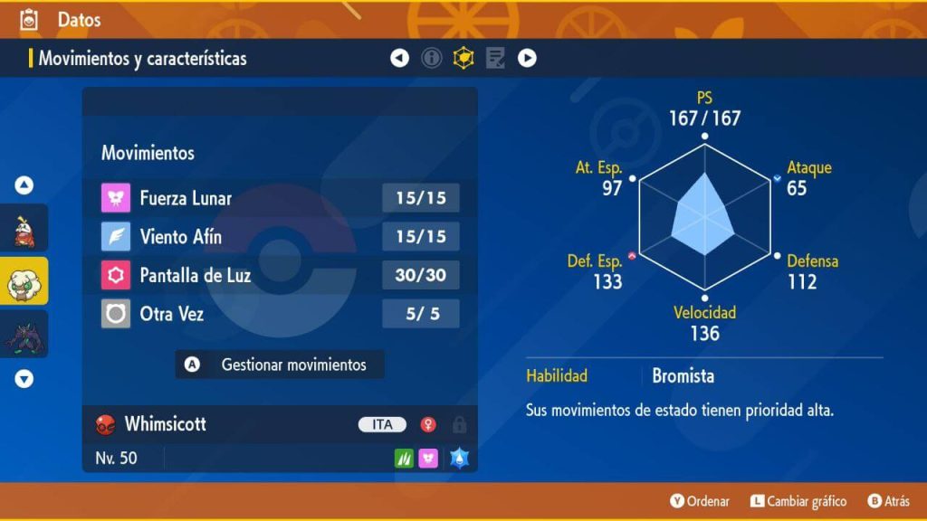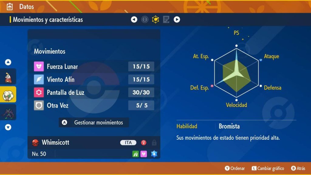 Una vez canjeéis la contraseña recibiréis un Whimsicott como el que detallamos a continuación. Dependiendo de cuantos Pokémon lleves encima, este aparecerá directamente en tu equipo o se introducirá directamente en la última caja que utilizaste. Os recomendamos guardar la partida tras comprobar que habéis obtenido al Pokémon.