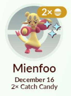 La hora destacada de esta semana será la de Mienfoo, con doble de Caramelos por Captura. Esta tendrá lugar el martes 16 de diciembre de 18:00 a 19:00, hora local.