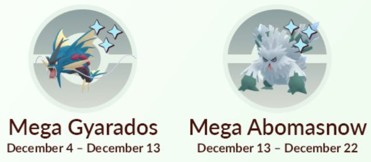 En las megaincursiones tendremos la presencia de Mega Gyarados, quien cambiará el sábado 13 de diciembre por Mega Abomasnow.