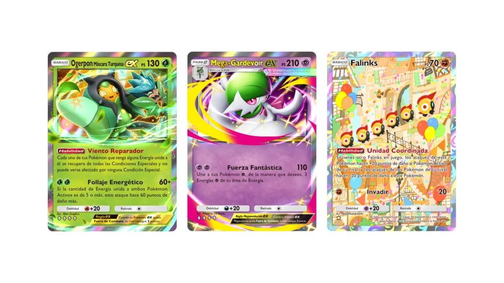 Actualmente ya se han revelado algunas cartas de ilustraciones especiales, además de algunas cartas de Megaevolución ex. Adjuntamos imágenes oficiales de las nuevas cartas.