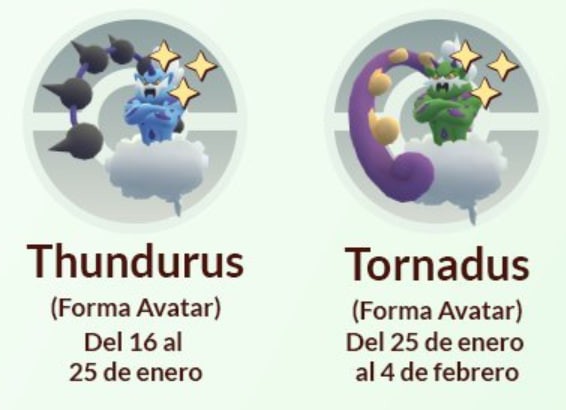 En las incursiones legendarias tendremos la presencia de Thundurus (Forma Avatar), quien cambiará por Tornadus (Forma Avatar) el domingo 25 de enero.