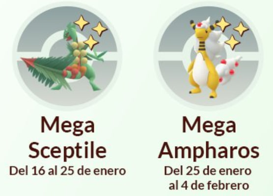 En las megaincursiones tendremos la presencia de Mega Sceptile, quien cambiará por Mega Ampharos el domingo 25 de enero.