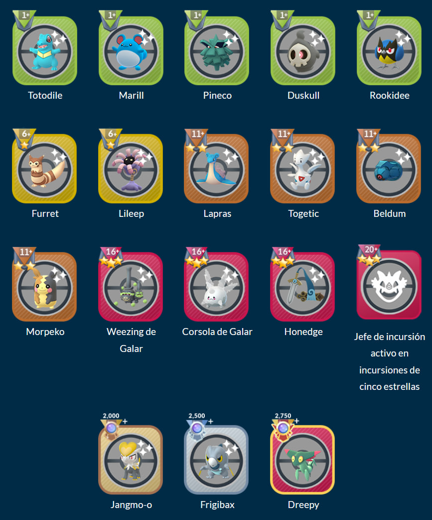 - Liga Super Ball, Liga Ultra Ball y Liga Master Ball: Entre el 24 y 31 de marzo (x4 de Polvos Estelares por victoria).