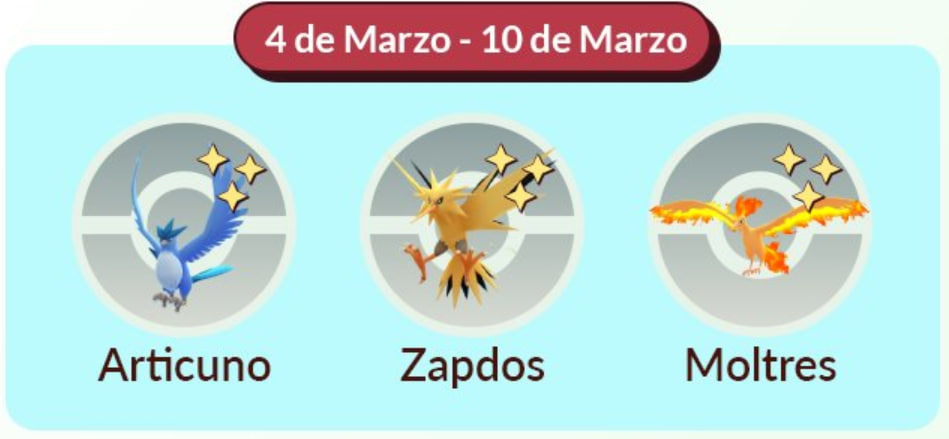 Articuno, Zapdos y Moltres además serán los protagonistas de la hora de incursiones del miércoles 4 de marzo de 18:00 a 19:00, hora local.