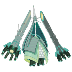 UE-04: Cohete (Celesteela)Varios testigos afirman haber visto cómo este Ultraente carbonizaba un bosque entero con el gas expelido por sus extremidades. Su característica más notable es la energía que alberga en el interior de su cuerpo, la cual le permite combatir e incluso volar. Este Ultraente se relaciona con su entorno de manera similar a las plantas, pues es capaz de absorber nutrientes del terreno. Exclusivo de Pokémon Luna., |