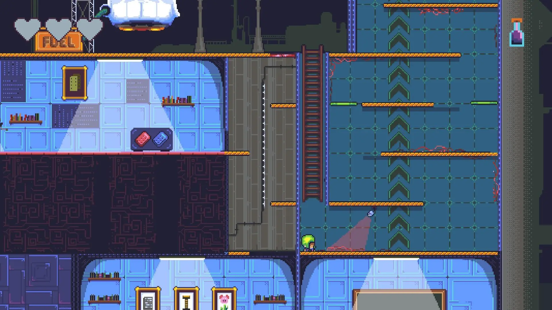 Al ser un juego de pocos recursos, ha sido un acierto elegir el pixelart como estilo principal artístico. Durante nuestra aventura pudimos apreciar que se ha hecho con cariño, pues los elementos del mapa y los personajes que representan figuras púbicas, están muy conseguidos y dan una muy buena ambientación a 3 Chicas in Tech. En general, todos sigue una línea así que es difícil encontrar algún punto del juego que no siga su propio estilo.