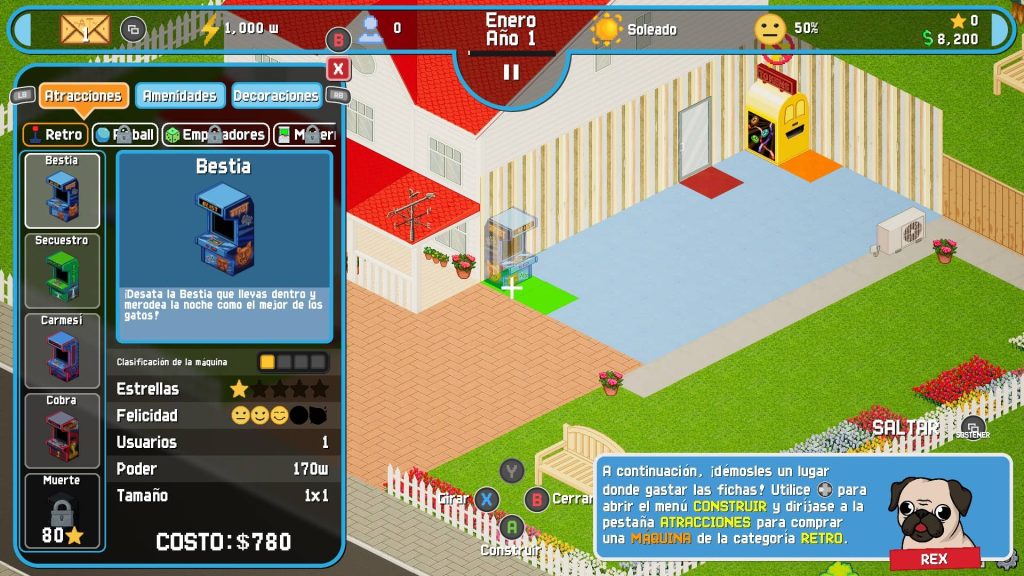 Lo que tendremos que tener en cuenta será que cada cierto tiempo, las tendencias y modas cambiarán, volviéndose más populares unos tipos específicos de Máquinas y Consolas, siendo importante contar con las más solicitadas para poder atraer al número máximo de clientes. Inicialmente solo contaremos con Máquinas Arcade, pero conforme obtengamos Trofeos de Plata, podremos comprar nuevas adquisiciones, como Máquinas de Pinball, Juegos de Carreras o Consolas.