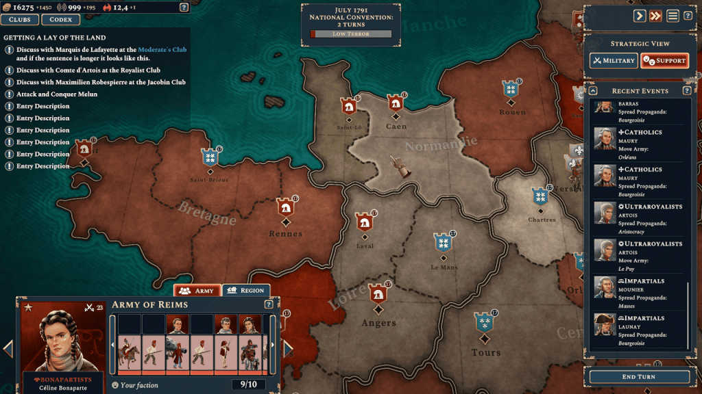 - No existe un objetivo real que permita completar una partida. Una vez se derrota a las otras facciones y se conquista toda Francia, el juego avanza sin hacer referencia alguna a las hazañas logradas.