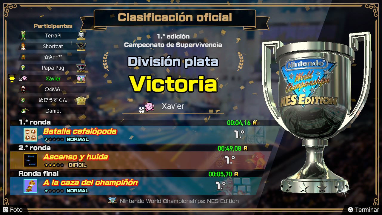 En conclusión, es un juego bastante directo y sencillo que nos propone realizar speedruns de forma muy accesible con un formato oficial. Cuando digo que es un juego directo y simple, me refiero a que todo está enfocado exclusivamente en esto y no ofrece nada adicional. Es una idea interesante para jugar de vez en cuando en solitario y para disfrutar en varias partidas con amigos durante una tarde en la que seáis varios. También es una buena forma de revivir una competición de Nintendo que tuvo lugar hace más de 30 años y probar los retos a los que se enfrentaron los jugadores del pasado.