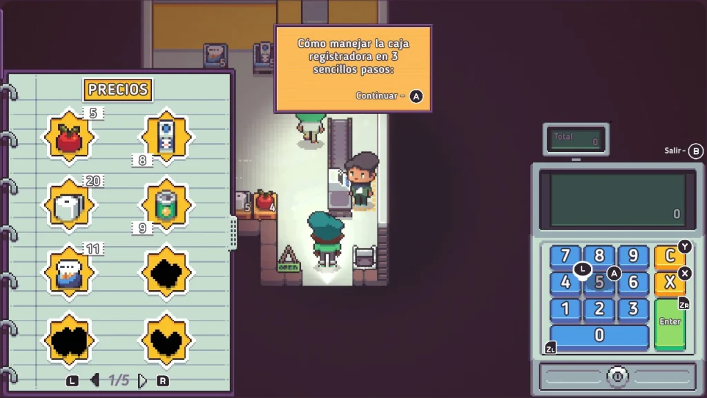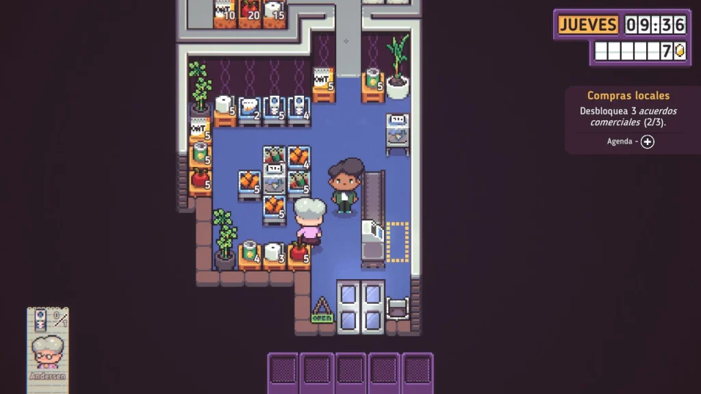 El horario de la tienda es de 09:00 a 17:00 (a excepción de los domingos, que son festivos), periodo de tiempo en el cual tendremos que encargarnos de atender a los clientes, mantener limpia la tienda, reponer productos agotados en los estantes y neveras y, en ocasiones, estar atentos a clientes específicos con los que tendremos que hablar para progresar en la historia.