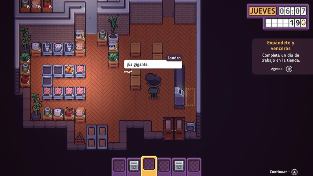De momento hemos visto un poco por encima cómo se gestiona la tienda y el ambiente que hay en el pueblo, pero ya va siendo hora de hablar de negocios. Como juego de gestión, en Discounty es muy importante que administremos correctamente nuestro dinero, ya que es la forma principal de mejorar, decorar y abastecer nuestro comercio y progresar en la historia. De este modo, y especialmente en las primeras horas, nuestra toma de decisiones será fundamental: tendremos que saber priorizar en qué y cómo gastar nuestro capital.