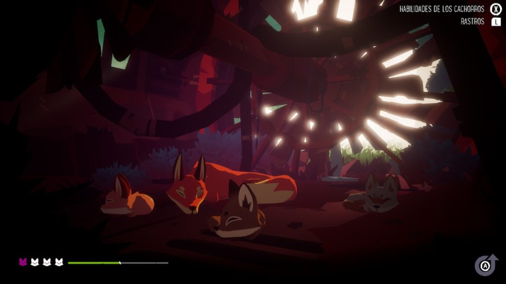 Sobre el gameplay del juego, de primeras puede parecer algo tranquilo y relajado (dentro de lo que cabe, el inicio es escapar de un bosque en llamas) pero cuando logres completar un par de días comenzarás a notar que no todo es tan calmado y simple. La comida comenzará a escasear y no será una tarea tan sencilla alimentar a tu camada, por lo que tendrás que abandonar tu zona y adentrarte en más peligros. Además, mientras buscas la comida, también deberás controlar de vez en cuando en que momento de la noche te encuentras y la distancia de tu madriguera, para poder volver a primera hora de la mañana a tu hogar y estar a salvo con tus cachorros.