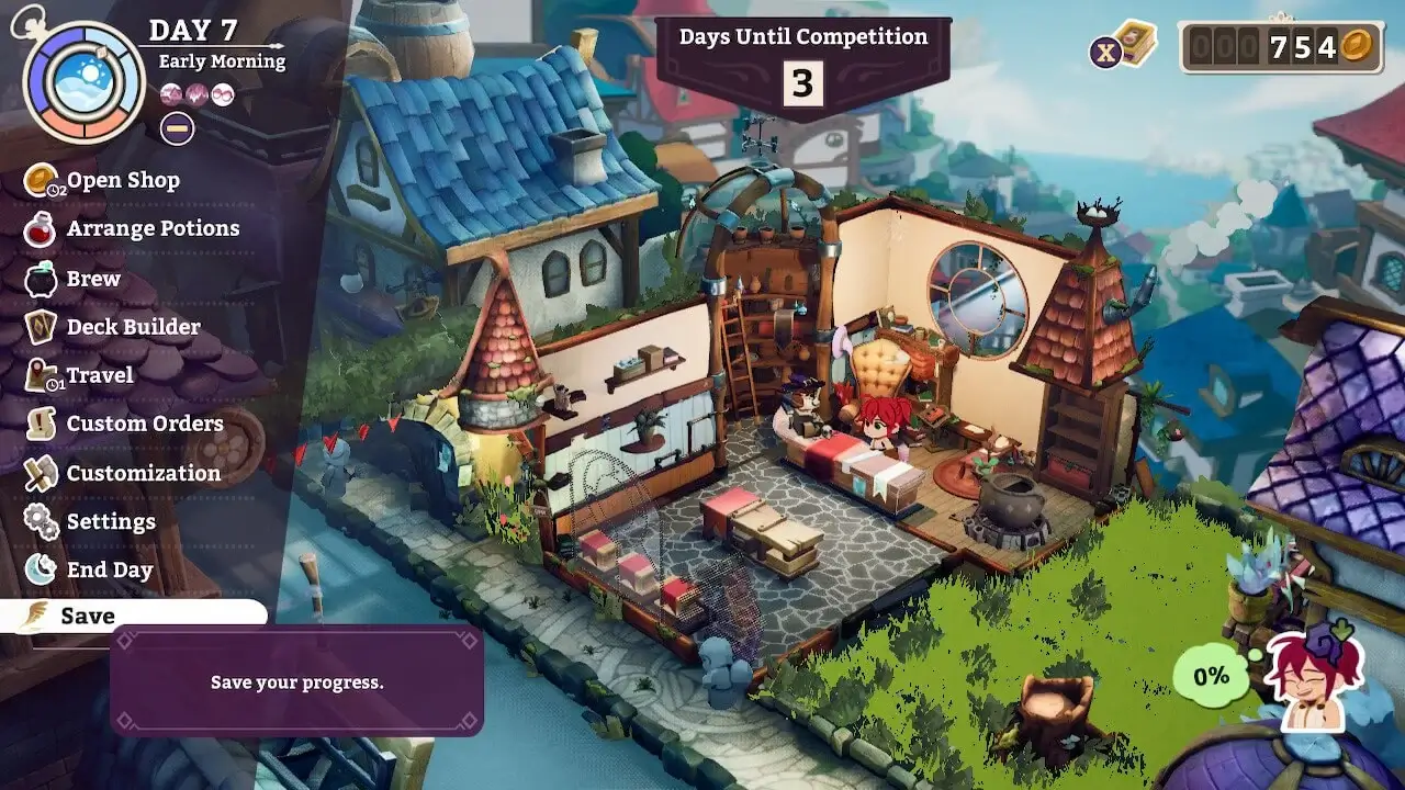 Lo más importante en Potionomics es saber organizar los días, pues contamos con un límite de acciones diarias. Abrir la tienda, ir a visitar a alguien o elaborar pociones son algunas de las tareas que consumen acción. Si no quieres llegar a la competición sin las pociones necesarias aprendidas y bien preparadas, es extremadamente importante no perder el tiempo.