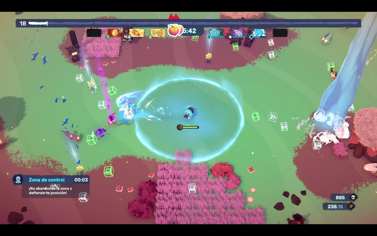 La progresión del juego se realiza mediante los kudos, como hemos visto al final del apartado anterior. Por ejemplo, si superamos el segundo mapa desbloquearemos el tercero, y si superamos el tercero podremos jugar al cuarto mapa. La progresión en ese sentido es bastante lineal, pero para desbloquear nuevos equipamientos, habilidades o sinergias tendremos que cumplir algunos requisitos en concreto (que podemos consultar en todo momento dentro del menú principal o al acabar una partida).