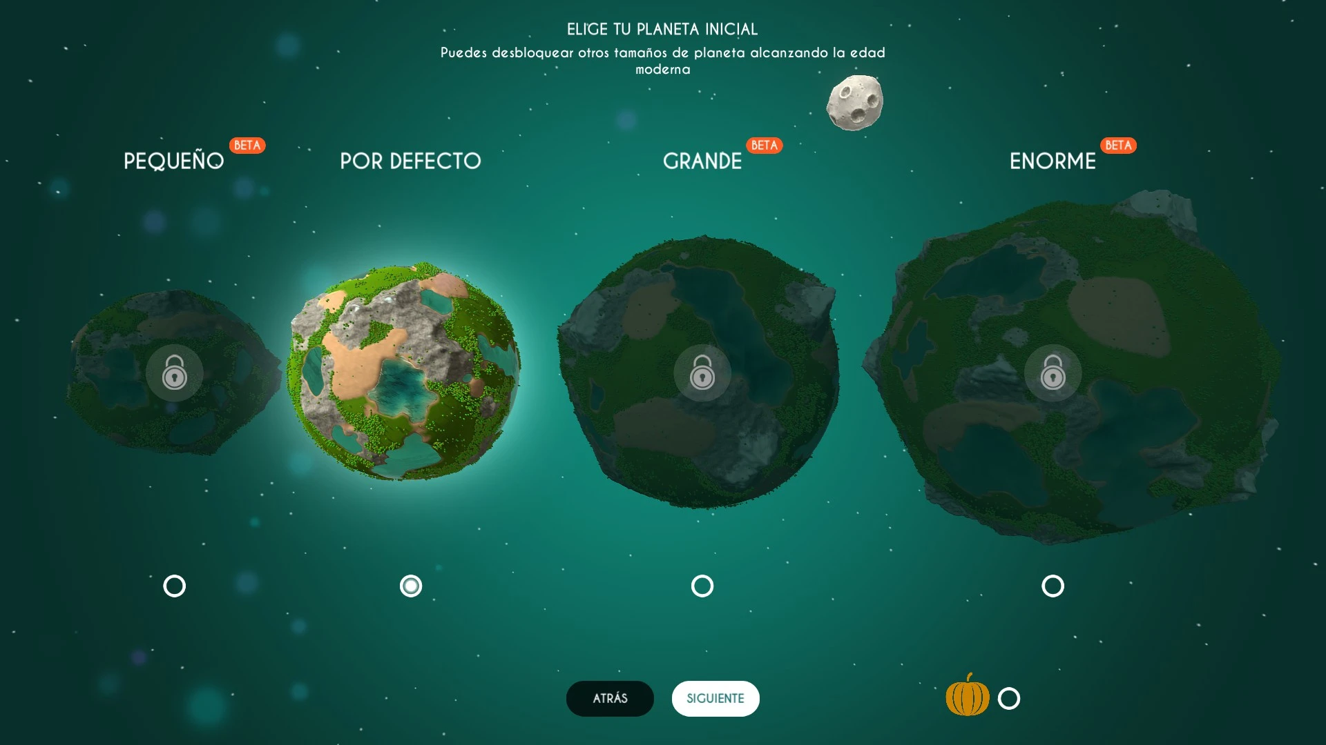 Al inicio de nuestra partida debemos elegir el tipo de planeta en el cual se desarrollará nuestra civilización. Tras decidirnos, se nos mostrará una pantalla con información variada sobre los nuggets y el comportamiento de la fauna y los desastre naturales. Una vez cargado el mundo, tendremos que elegir el lugar exacto del planeta en el que queramos que se ubique el epicentro de nuestro pueblo.
